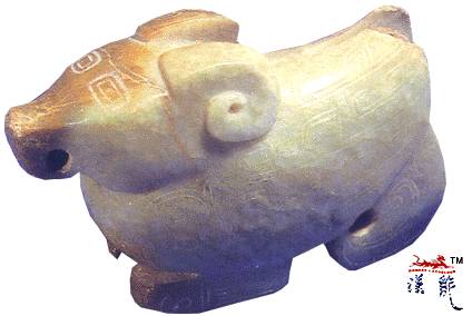 周.玉鴞,浅黄色,圆雕,呈伏卧状,高5厘米,长7.8厘米,嘴尖,喙下折上钩,两角弯曲,