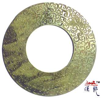 一面光素,一面以双钩饰细密变形并兼装图案的鸟纹,1983年河南光山黄君孟墓出土,现