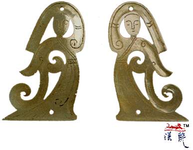 有一小圆孔,可穿系结缀为饰。共一对,形态优美,线条纤