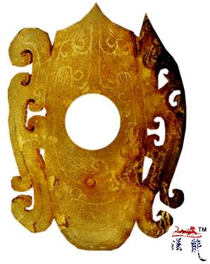 呈心形,中间一圆孔。四周阴刻流云