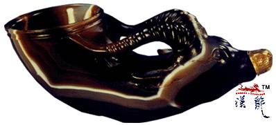 .镶金牛首玛瑙杯,红色,晶莹透明,器呈牛首形,牛嘴镶金,高6.5厘米,长15.6