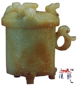 个卧狮,盖面间饰兽面纹,盖沿饰云