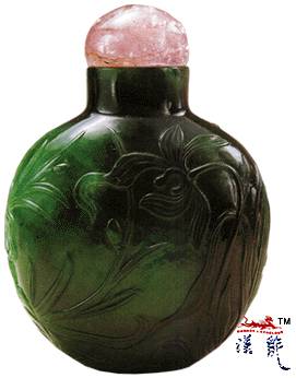 .雕花翠烟壶,通高5.3