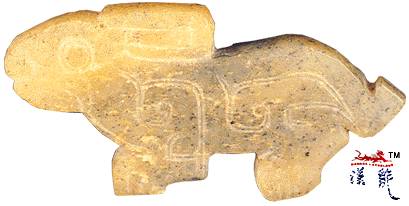 ,兔形玉佩,高3.1厘米,宽6.4厘米,厚0.4厘米。现