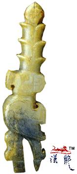 .鸟形玉柄,青褐色,立