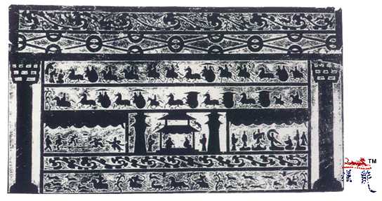 汉 乐舞画像石,减地阳文,高141厘米,宽273厘米,1971年陕西米脂东汉墓出土,现藏米脂县博物馆。