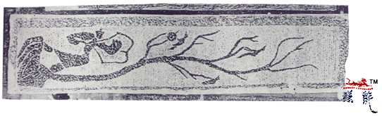 汉 后羿射日画像石,高129厘米,宽30厘米,墓件构件之一。河南南阳出土,现藏南阳汉画馆。