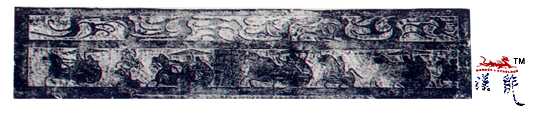 汉 郭仲理墓画像石,红砂石质,采用减地阳文技法,画面分两层,高33.5厘米,宽163.5