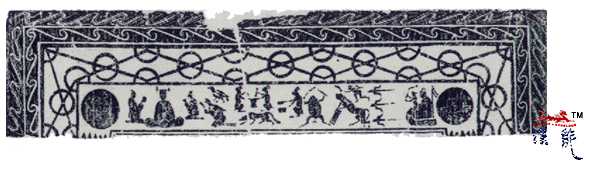 汉 东王公西王母画像石,高16.7厘米,宽38厘米,此为墓门的门楣,画面采用减