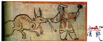 屠牛图,砖画,纵17厘米,横36厘米,嘉峪关6号墓