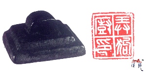 弄狗厨印铜印,高1.3厘米,长2.5厘米,宽2.3厘米,近方形,台式瓦钮,钱身较薄,