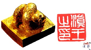 汉 滇王之印金印,方形,蛇钮,昂首盘屈,身有鳞纹。高1.8厘米,重89.5克,边
