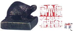 汉 广汉大将军章银印,方形,龟钮,高2厘米,边长2.35厘米,现藏上海博物馆。