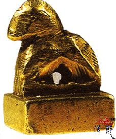 晋 晋归义氐王金印,近方形,驼钮,高3.2厘米,长2.2厘米,宽2.1厘米,