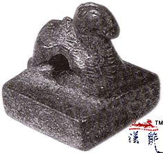 晋 晋率善羌邑长铜印,近方形,驼钮,高2.5厘米,长2.2厘米,宽2.1厘米,
