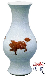 .熙釉裡红三狮翻口琵