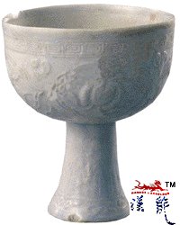 白釉荔枝纹高足杯,通高10.2