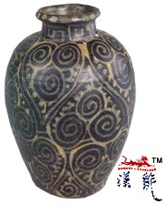 釉彩绘捲草纹罐,