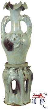 釉花口双耳驼座瓶,