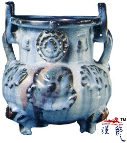 .钧釉贴花双耳三足