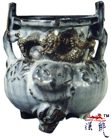 .钧釉贴花双耳三足