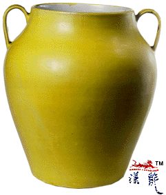 .弘治,黄釉罐,广口,鼓腹,
