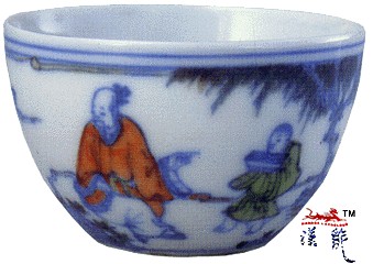 .成化,斗彩高士图杯,杯身绘斗彩纹饰二组,