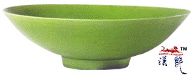 通体施绿釉,釉色纯净,有光泽,绿釉分为高温釉与低温釉二类,此碗造型规整,碧翠雅丽,