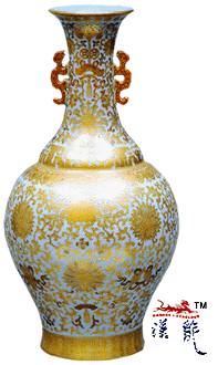 隆粉青地金彩双耳瓶,高