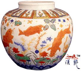.嘉靖 五彩鱼藻纹大罐,