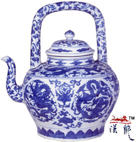 .隆庆 青花团龙纹提梁壶,