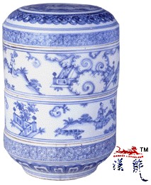.正德 青花人物套盒.盖(局部)高23.6厘米,口径16.1