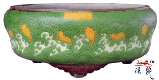 .正德 素三彩海水蟾纹三足洗,