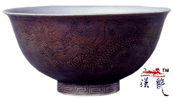 .万历,茄皮紫釉暗龙纹碗,高7.3厘米,口径14.8厘米,故宫博物院藏。