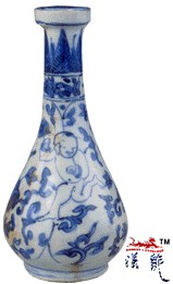 .万历二十一年,青花婴戏纹长颈瓶,高14.8厘米,