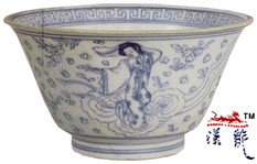 .顺治 青花天女散花碗,