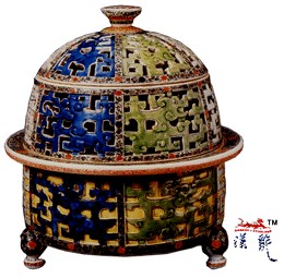 上层带平顶钮,钮为红彩龙戏珠,底附
