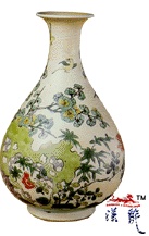 .康熙 米色地五彩花鸟纹瓶,