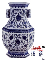 .乾隆 青花缠枝莲纹六角贯耳瓶,