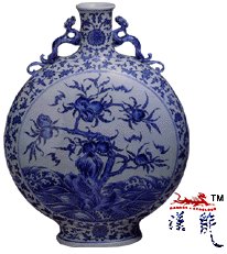 .乾隆 青花海水九桃纹龙耳扁瓶,