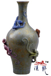 .乾隆 粉彩描金堆贴蟠螭纹瓶,