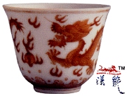 红彩双龙纹杯,