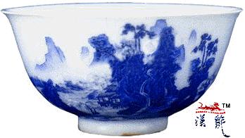 .雍正款琺瑯彩蓝色山水纹盌,现藏故宫博物院。