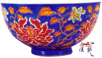 .康熙款蓝地琺瑯彩牡丹纹盌,现藏故宫博物院。