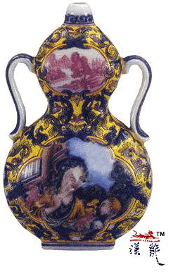 .乾隆款黄地琺瑯彩妇婴图葫芦式小瓶,现藏故宫博物院。