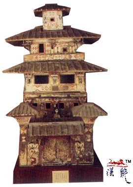 汉 绘彩绿釉陶楼,高