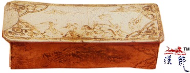 .磁州窑人物长方形枕,长33厘米,高11厘米,枕呈长方形,主题花纹为唐僧和