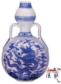 青花云龙纹双耳扁壶,