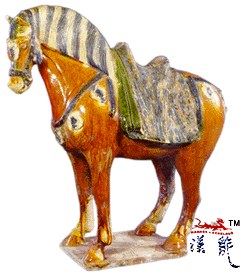 .三彩红釉马,