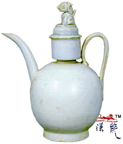 青白磁狮子钮盖水注,
